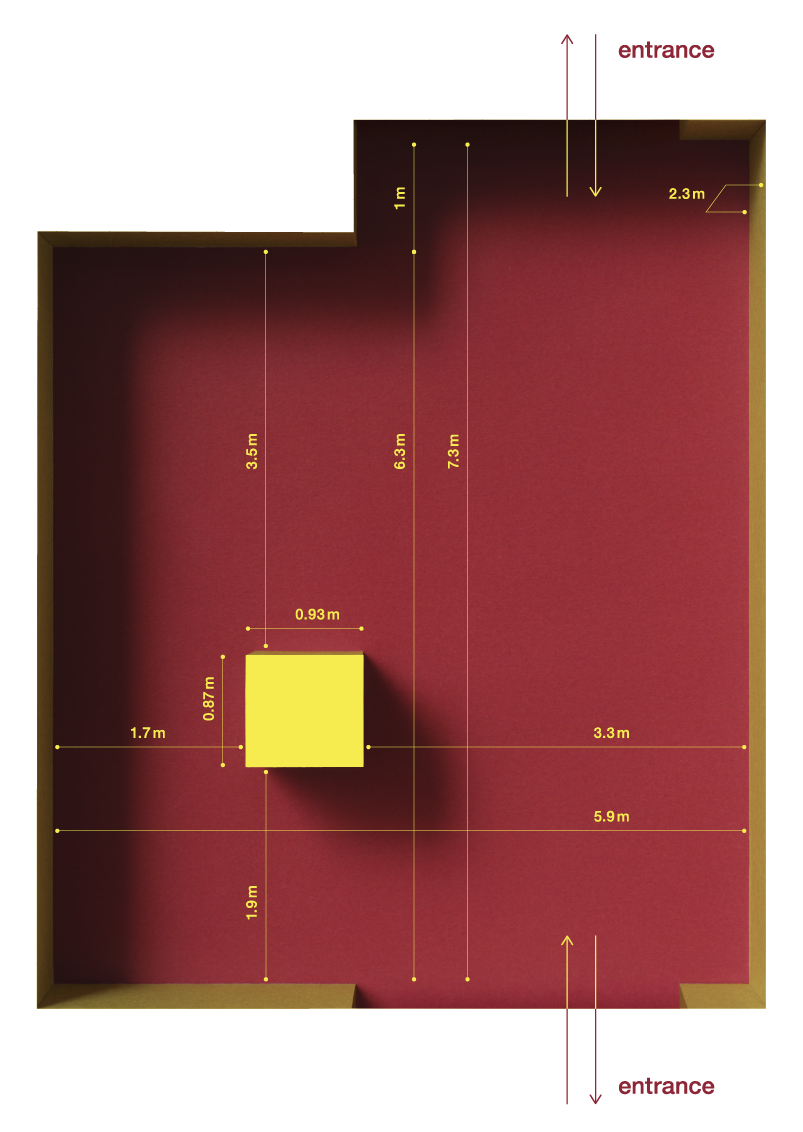 - k. 2 箇所の出入り口(図面参照)を閉めきる展示