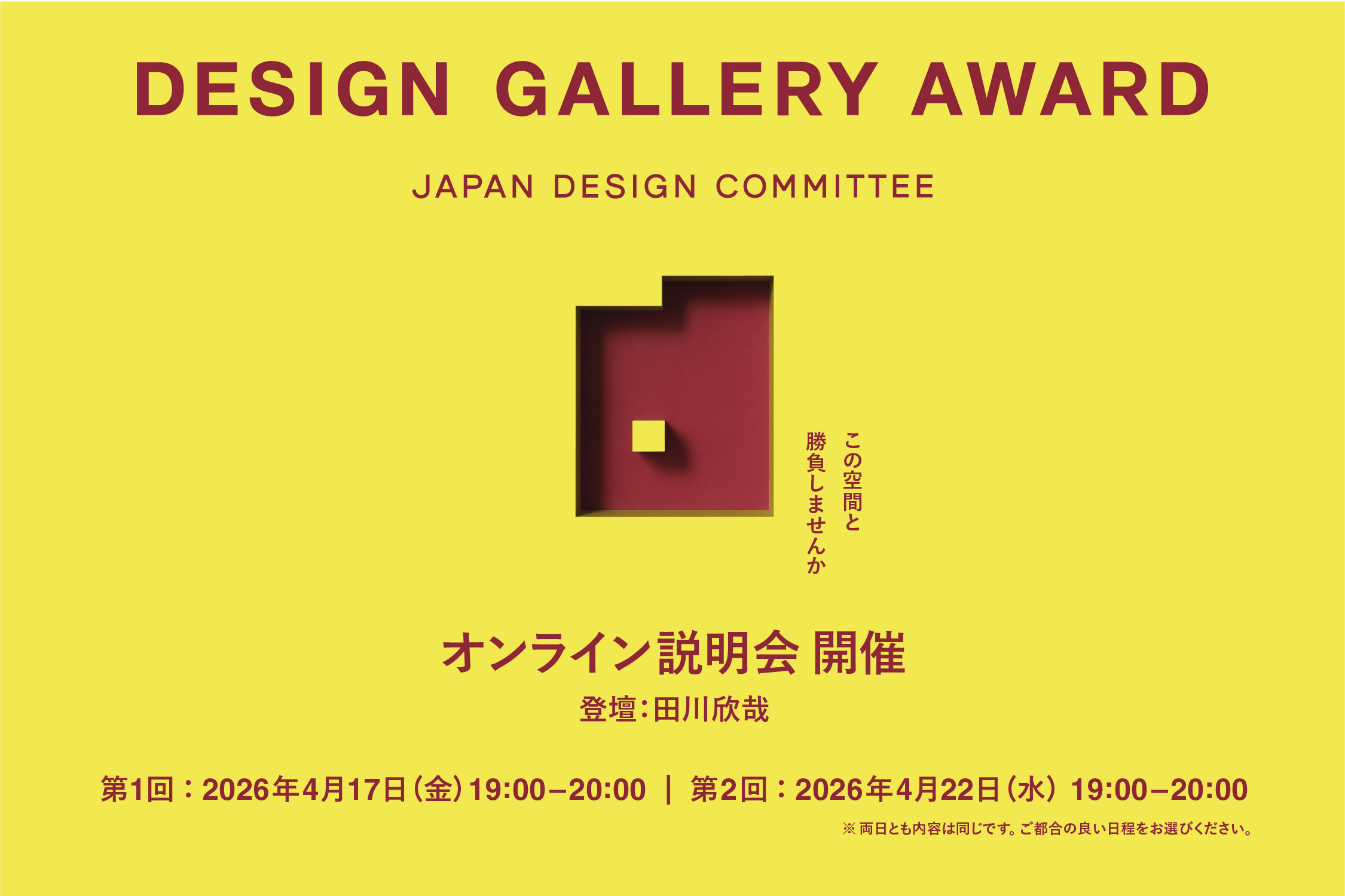 当日は、日本デザインコミッティー理事長であり、デザインエンジニアの田川欣哉が登壇し、本アワードの設立趣旨について解説するほか、皆様からのご質問にお答えするQ&Aセッションも予定しております。