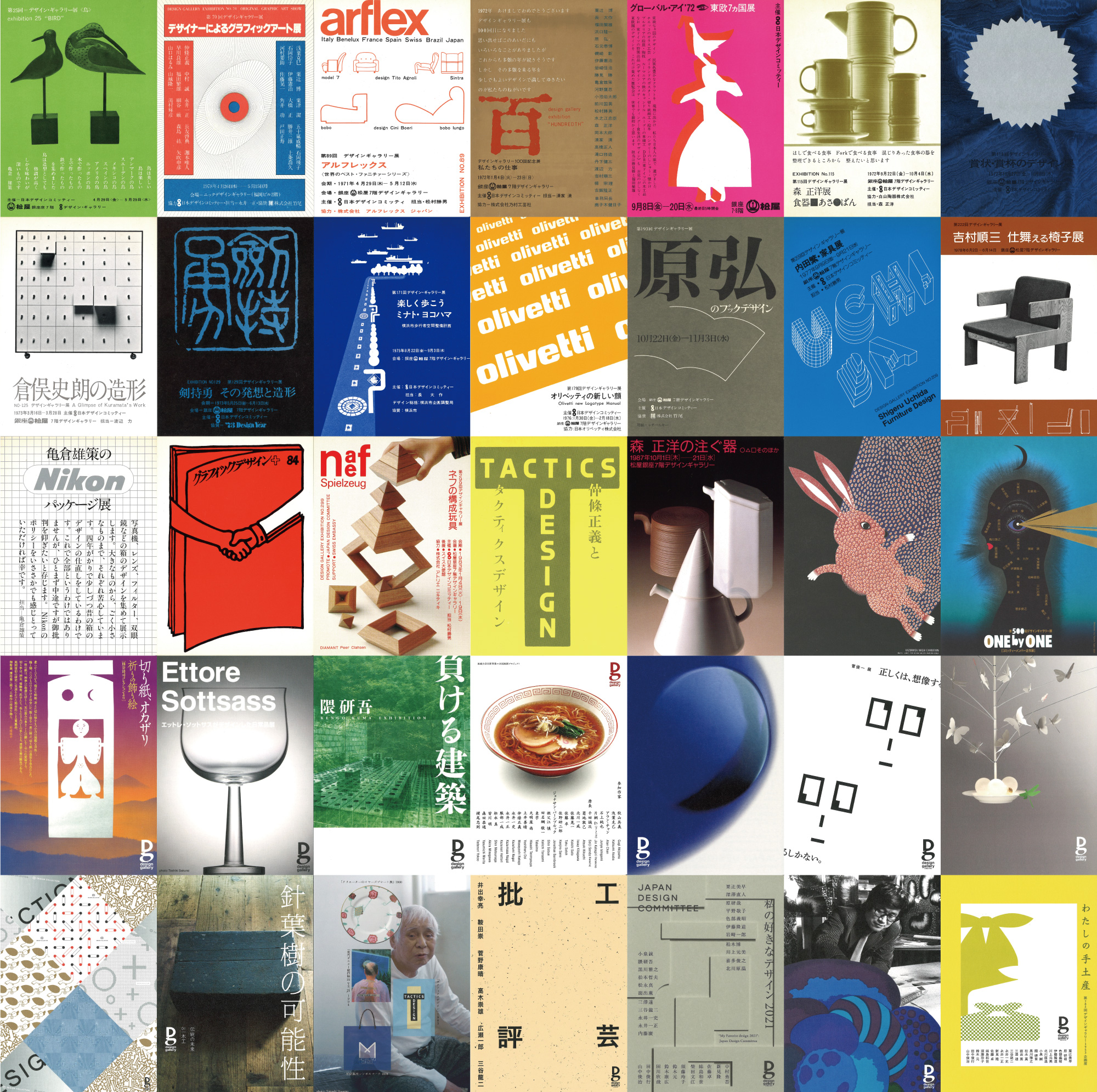 日本デザインコミッティーは、高い志のもと、デザインの理解や意識を深める活動を続けて以来73年になります。メンバーの新旧の変化を繰り返しながら、松屋とのパートナーシップのもと、「デザインコレクション」の商品選定、「企画展」や「デザインギャラリー」の運営などを継続してまいりました。この度は松屋銀座開店100周年アニバーサリーの締めくくりとして、約800回を重ねてきたデザインギャラリー展のダイレクトメールを中心に、明日につながる軌跡を辿ります。私たちは、発足当時よりインディペンデンスを旨として、ボランティア精神を基に参集し、他に類を見ない様々なデザインジャンルのプロの集まりとして、実に多様で、且つバランスの取れた思考で運営されていると、自負致しております。これからも、いろいろな企画、運営を通して、デザインの素晴らしさ、楽しさを人々に伝えていく所存です。DMに加え、現メンバーの言葉も併せ紹介いたします。ご高覧いただければ幸甚に存じます。